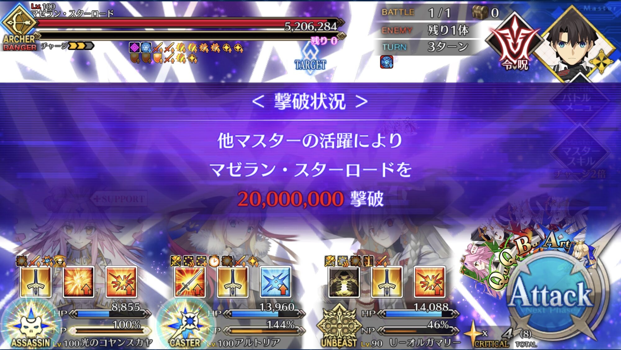 マゼランくん、宝具ワンパンして戻ってくるまでに3~4万折られてる…