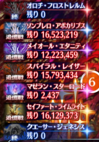 当初は6カ所しかなかったし、過半数超えたと記憶しているマゼランを伐採したら今日は終了かな…ほかの空想樹が明日の夜まで残っている気がしないけど