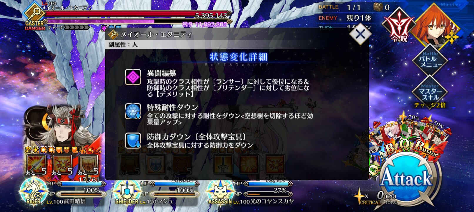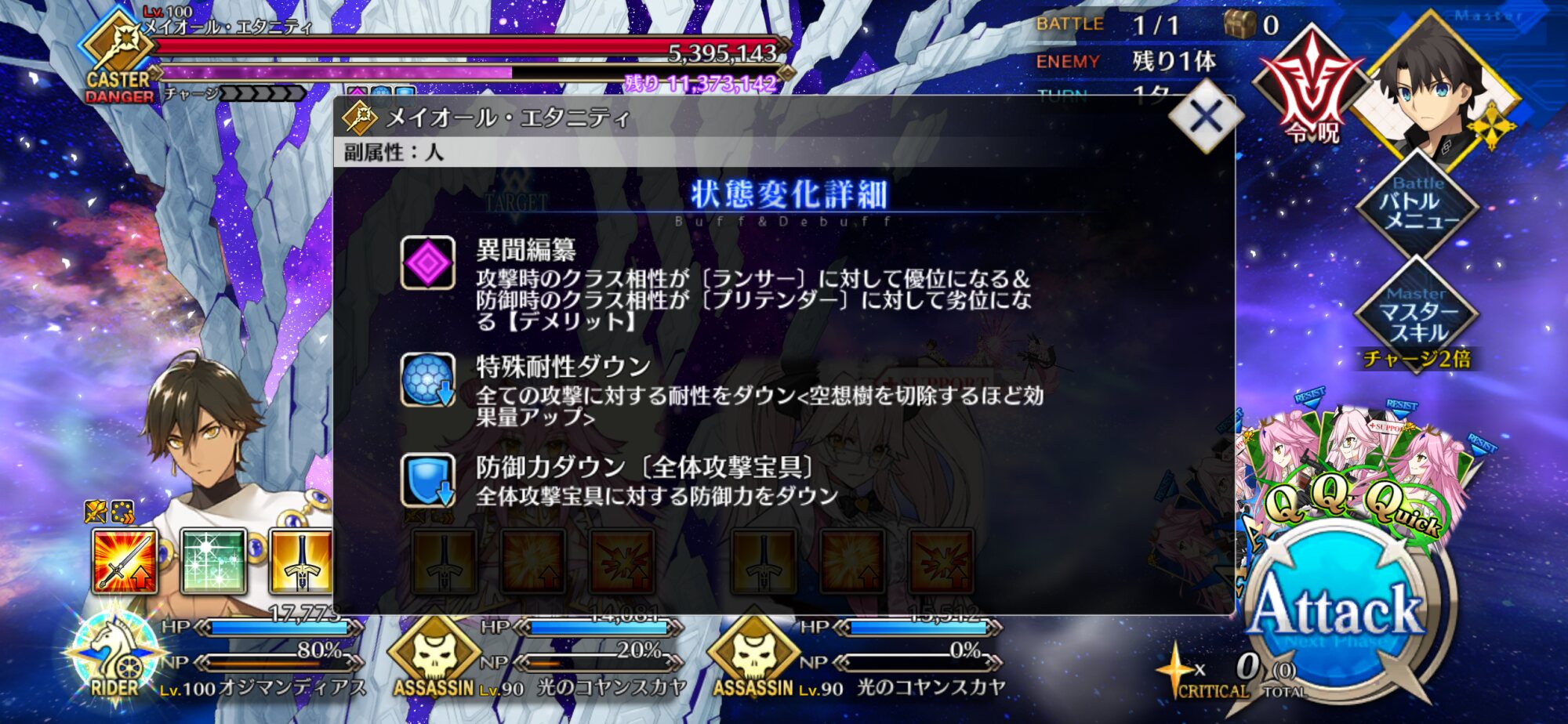 単体Q宝具ライダーを借りたら冠位アルキャスの宝具使って3色宝具チェインしているを全体攻撃宝具耐性ダウンだと…?ひょっとして冤罪剣バルムンクの出番来たか?