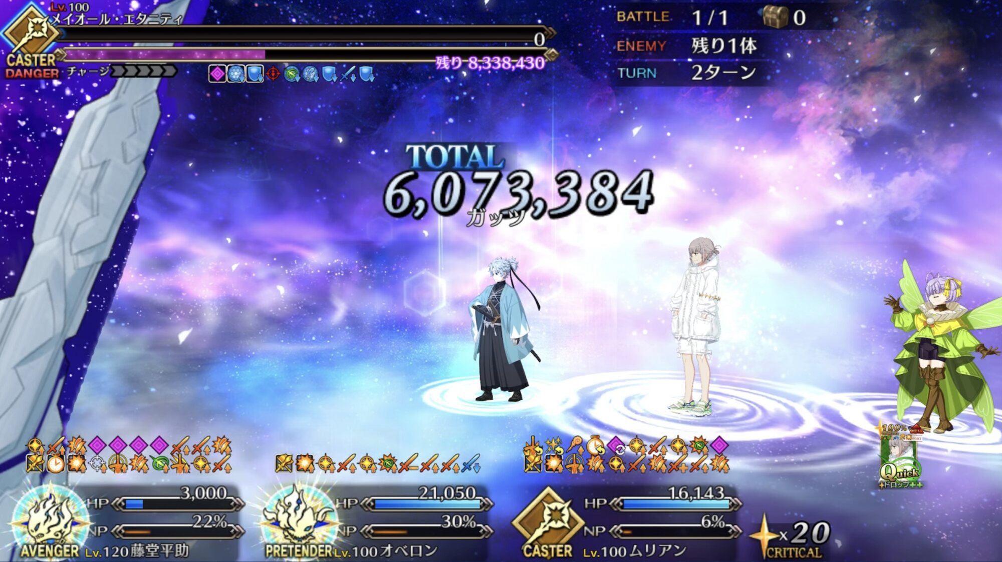 サポ所長がカード固定&星配ったあと沖田さんのマイティブレイブチェイン(3枚目宝具)で確殺よ