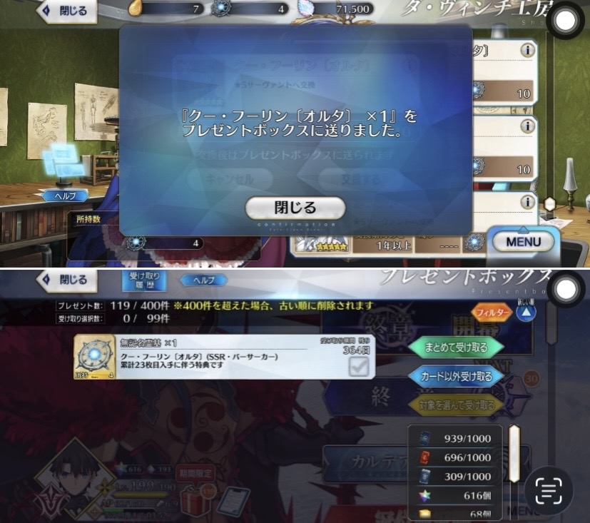 ありがとう、もらうねまだAP溢れそうになってないのにFGOを開いてしまう