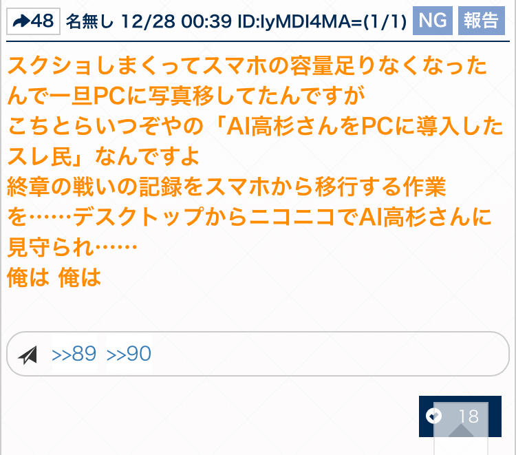 このスレという箱庭の中はスクショ上げなければネタバレ満載で話せる明日は寝不足確定の仲間しかいないのだから>>43