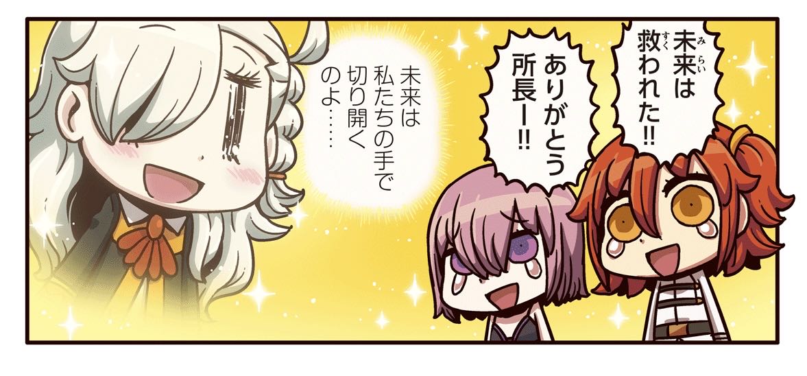 むしろパーフェクトマシュで最終決戦に臨めるようにしてくれた配慮に感謝だわ。エンディングは絵のタッチといい8周年思い出した