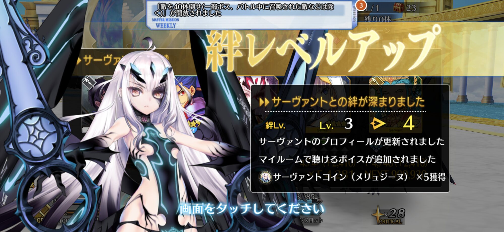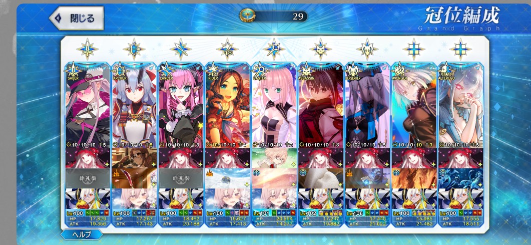 オススメサポートは5章終わりのところだったかに置いたメリュジーヌくらいしか使われてないから、なんか他2つは置き直したいけど自前の戦力でどこに置けば使ってもらえるか上手く浮かばないのよなぁ時系列が終章前という設定でフォーリナー章やバレンタインイベント、その他のイベントをやっていくのかな。