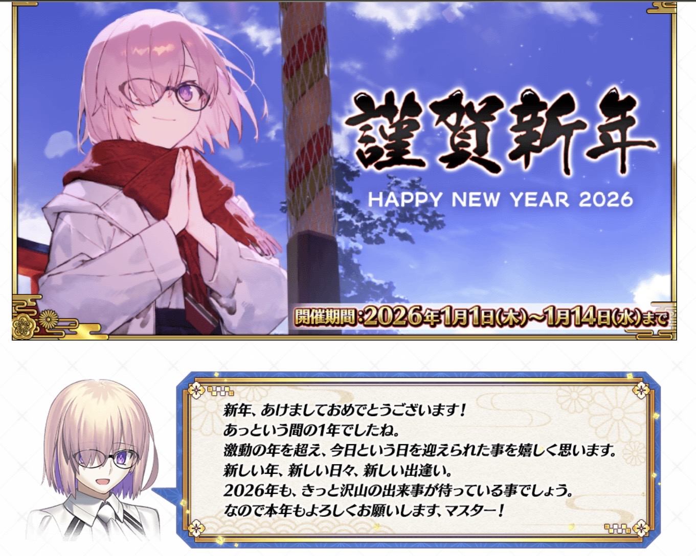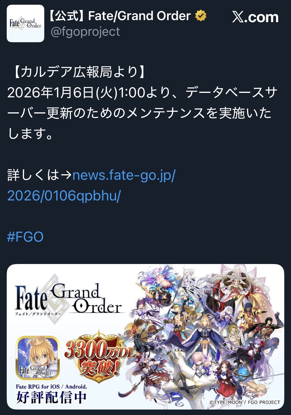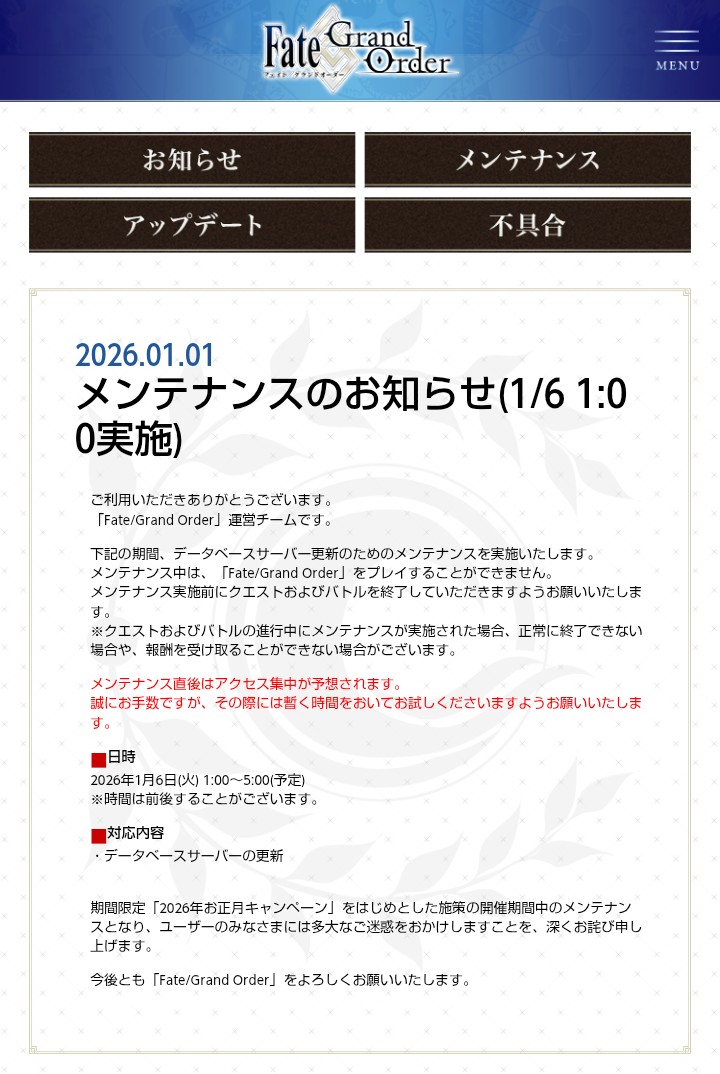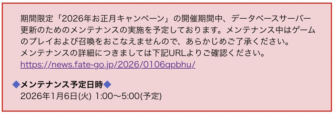 https://x.com/fgoproject/status/2006385112343294053さすがに終章後だから運営も休みたいだろ