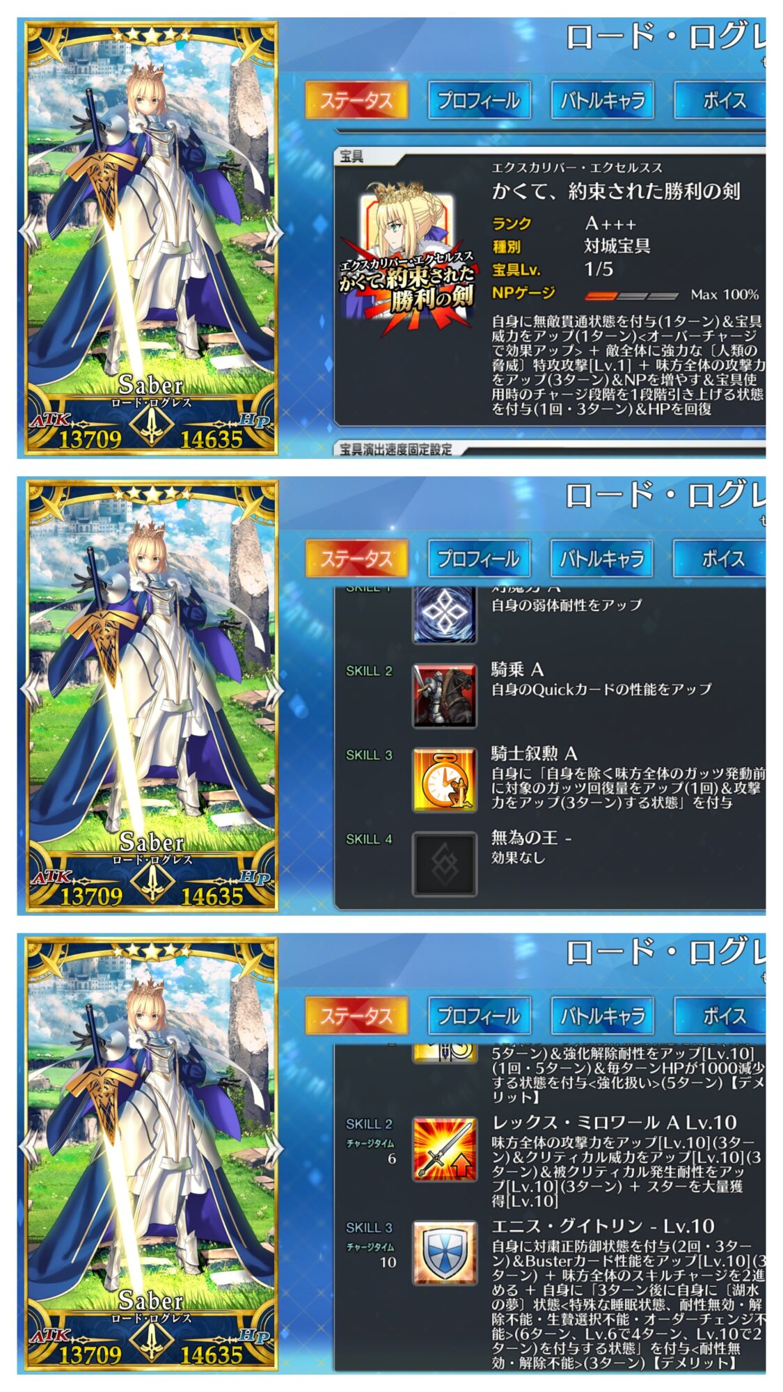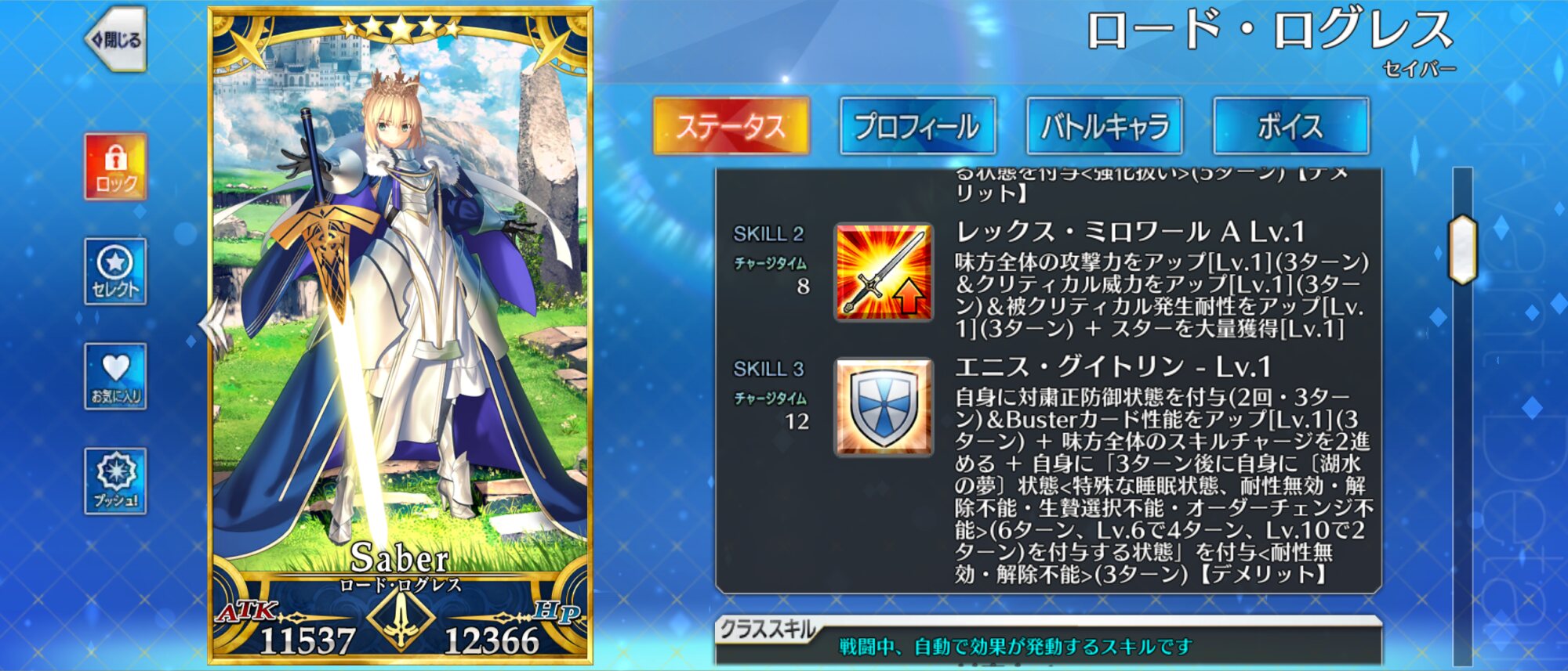 SNセイバーのギミックを再現した感じのスキルってことでいいのかな?ログレスってようするにナポレオンのアルトリア版?