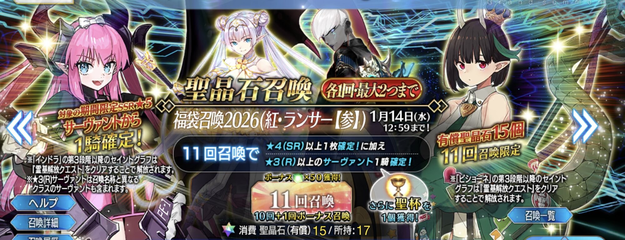 2回召喚手前で止まってるから「どこかで無料召喚忘れやらかしたか?」と若干不安になっているストーリー召喚エクセルススはラテン語で「高貴」「崇高な」か