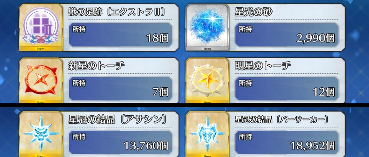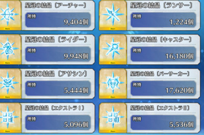 今カウントしたら戴冠戦Ⅶを5151回周回したら1852個+ソロモンのスキル強化の必要分を獲得していることになってるのに気づいた