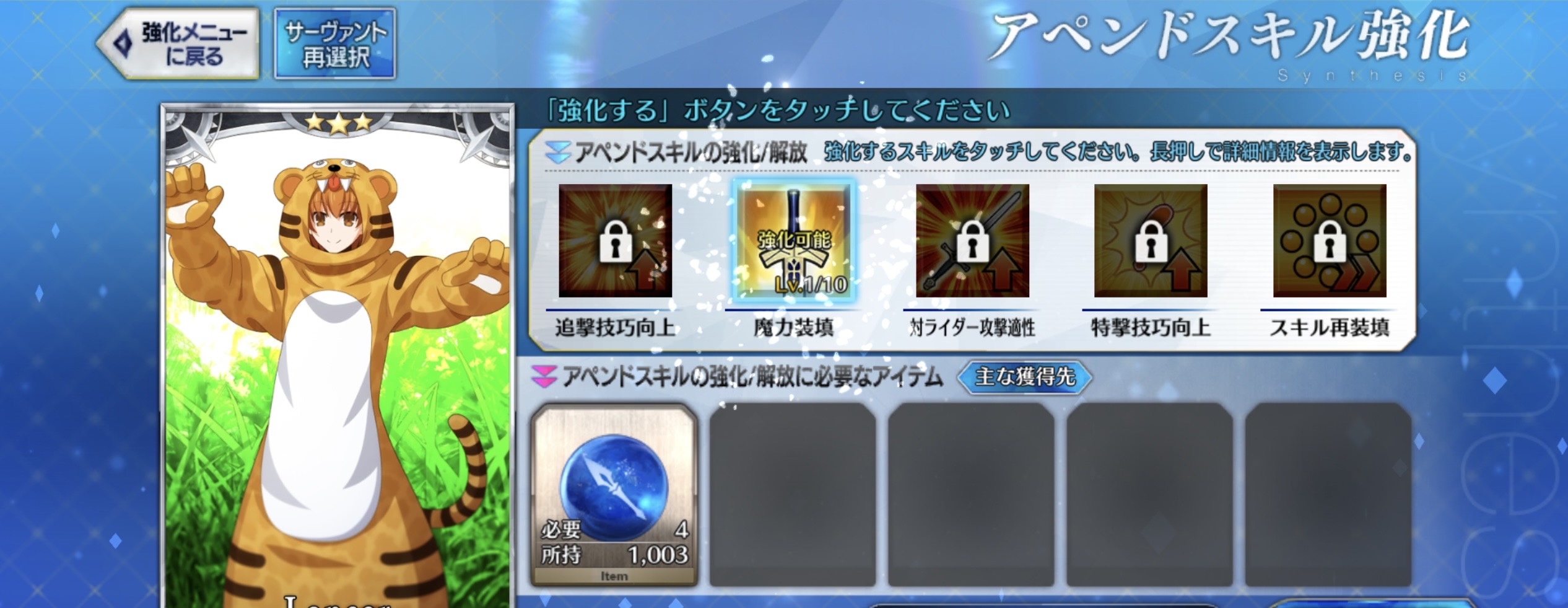 本命は全体NP50%チャージと宝具バフとガッツを付与する第三スキル