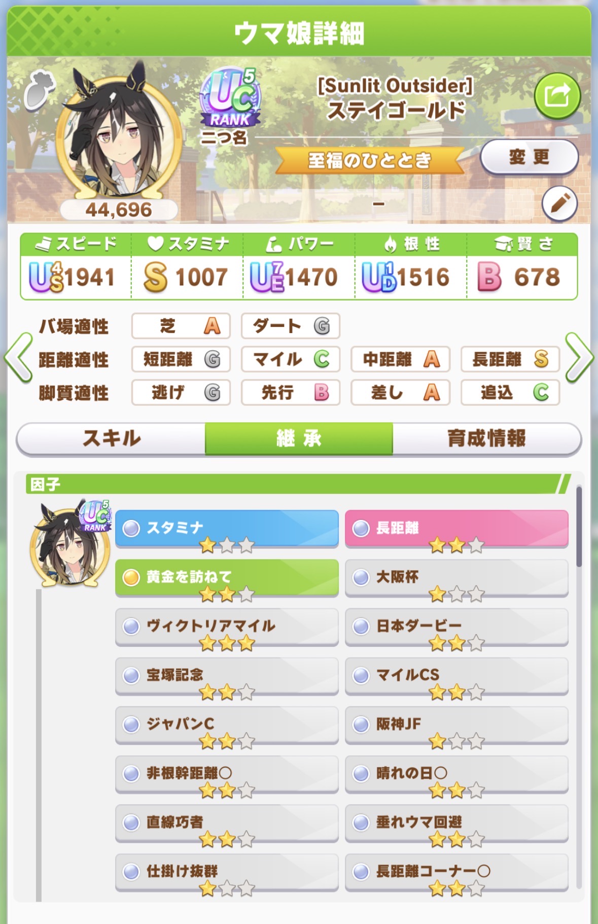 ま、まぁ…温泉シナリオにはスタミナ因子は必要無いが、次シナリオでは邪魔にならないかもしれないのでそこはまだ良い