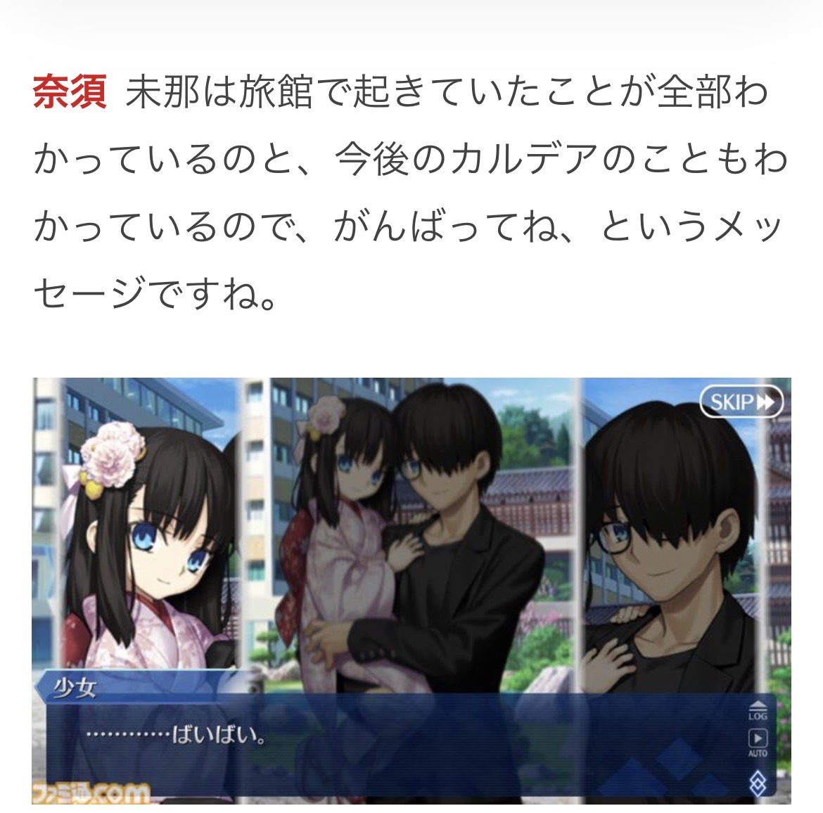 記憶といい、メンバーといい、ターミナルといい、なんかチグハグを感じるな終章の最後の逃げる時といい、今の記憶の件といい、カルデアス異聞帯の話さえなければ素直に納得できるが……