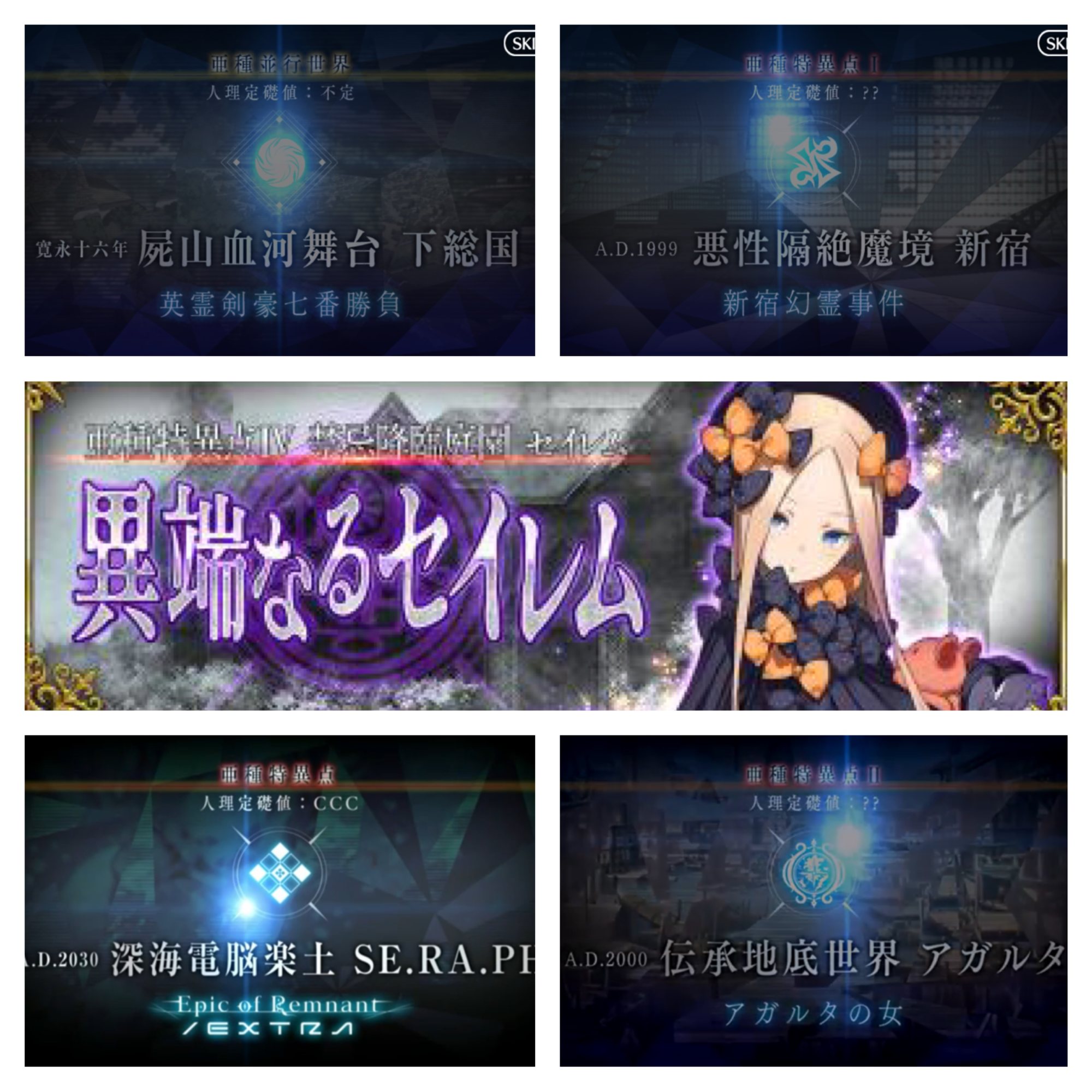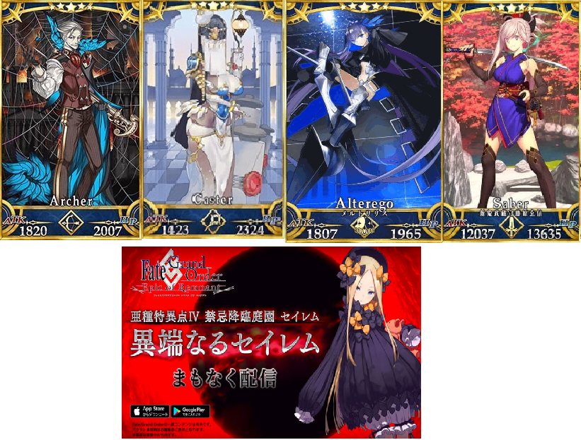 Apo記念PUにおらず、セイレムには子供たちが絡むということでアタランテさん欲しいなあ…そう言えばギャグ時空含め今までどんな形で聖杯出現してたんだ?