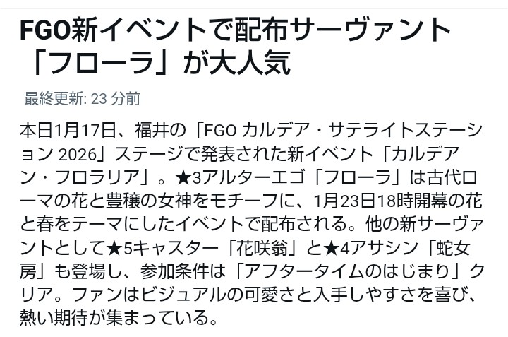 R18関連話題、よくてよ無しのガチャ結果、実装から二週間以内のシナリオ及び開催期間中のイベント内容、進行度依存の報酬、最終再臨や霊衣解放の画像や話題は専用スレにてお願いします