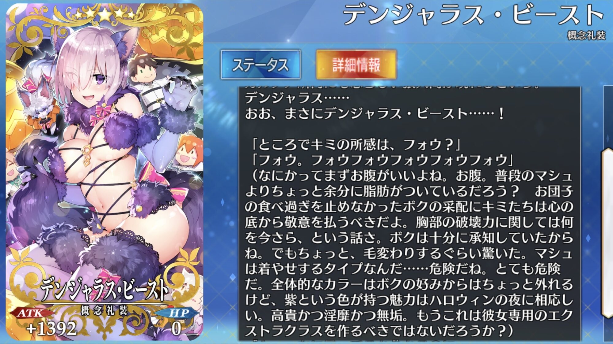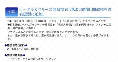 R18関連話題、よくてよ無しのガチャ結果、実装から二週間以内のシナリオ及び開催期間中のイベント内容、進行度依存の報酬、最終再臨や霊衣解放の画像や話題は専用スレにてお願いします
