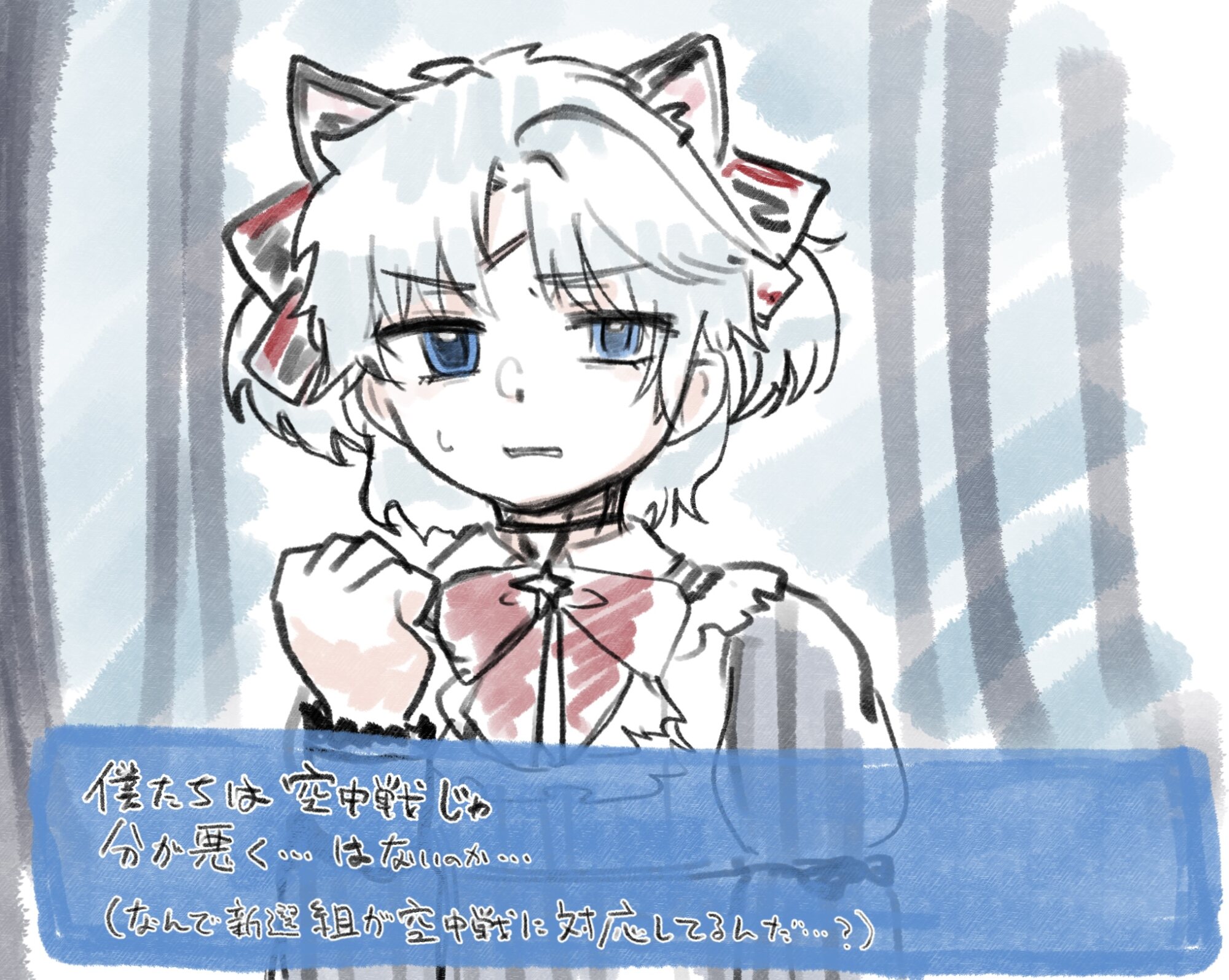 >ふぅ……、いきなりすみません。(息を吐き手を下げ)