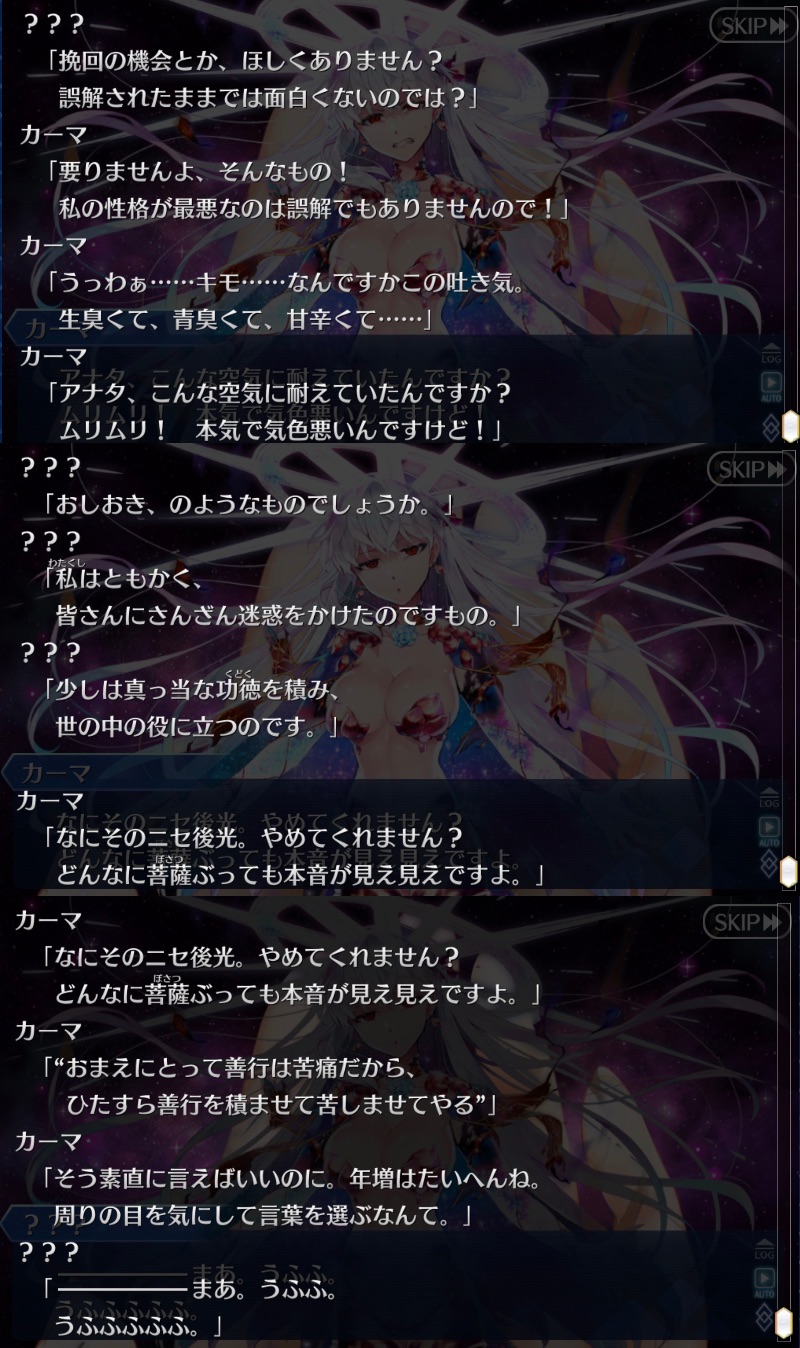R18関連話題、よくてよ無しのガチャ結果、実装から二週間以内のシナリオ及び開催期間中のイベント内容、進行度依存の報酬、最終再臨や霊衣解放の画像や話題は専用スレにてお願いします