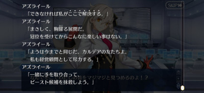 とりあえず今は降ってわいた延長戦タイムを楽しみつつ地球とオルガマリーの首の未来を守っていこう、ぐらいかしら>>89