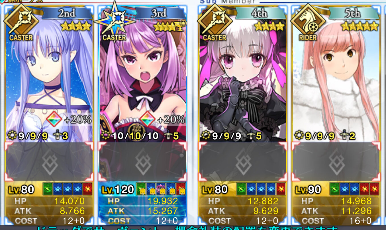 あとは杖持ちのキャストリアとトネリコゲームパーティは4人組が基本。大体パーティ8人からバランスを考えて前衛に出す。追加要素で2人ほど増えて10人という大所帯になることも