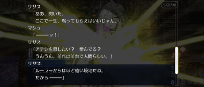 マシュなら全力でマスターを守ると信用していたからこそだろうしぐだに対しての好意もあったがそれ以上にマシュへの嫌悪が勝っていたんだろなあと。良くも悪くもマシュへの執着やらがあの特異点でのリリスは大きかった。今のリリスは記録としては知ってるがそこまで執着してない感じはするからあの時ほどバチバチにはならないんじゃないかな。せいぜいエミヤとクーフーリンくらいの関係に落ち着きそう>>976