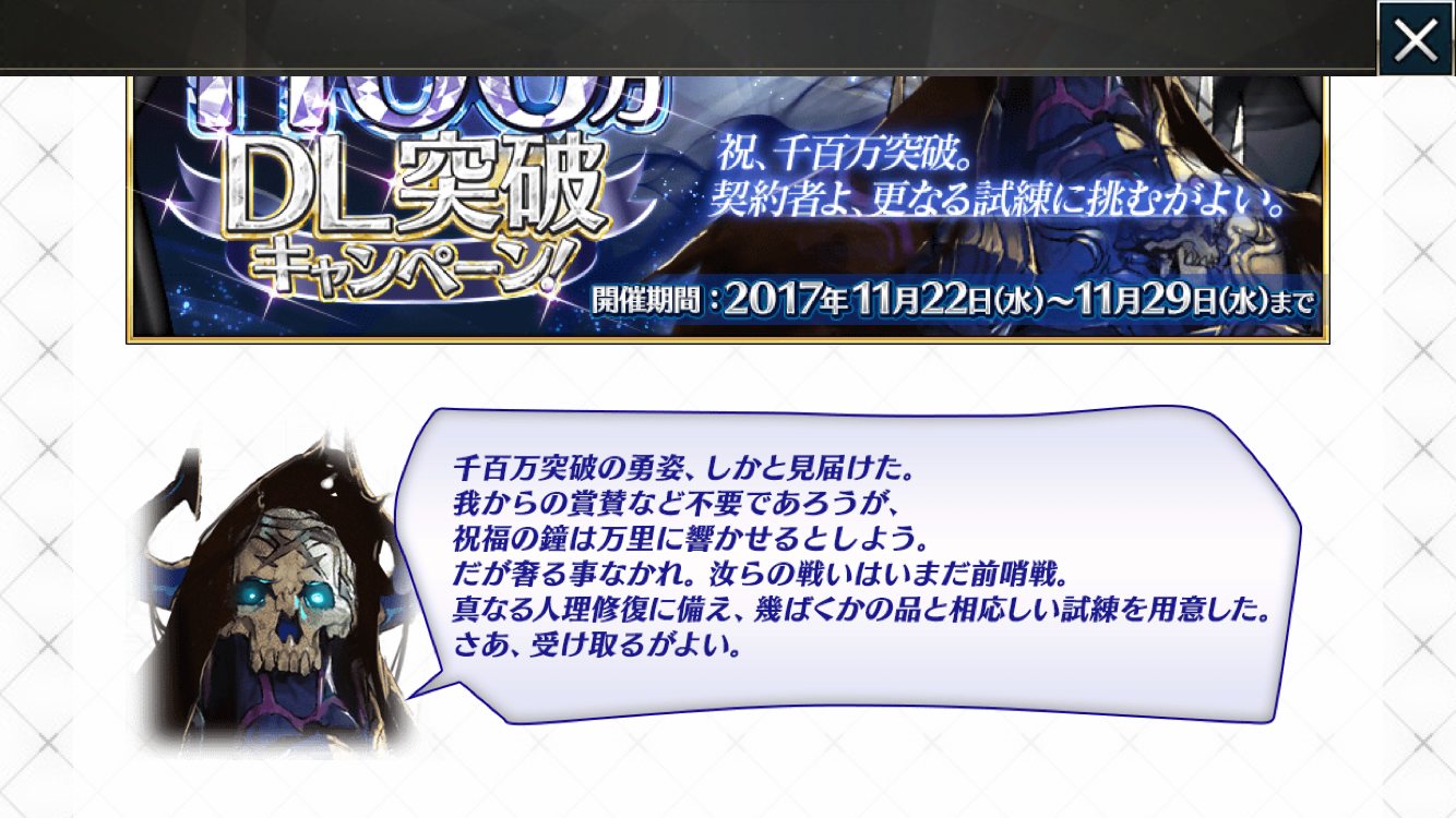 画像は適当にトップ画像のリンクスクショしてはる(だったっけ1000ならカルデア餃子パーティー開催