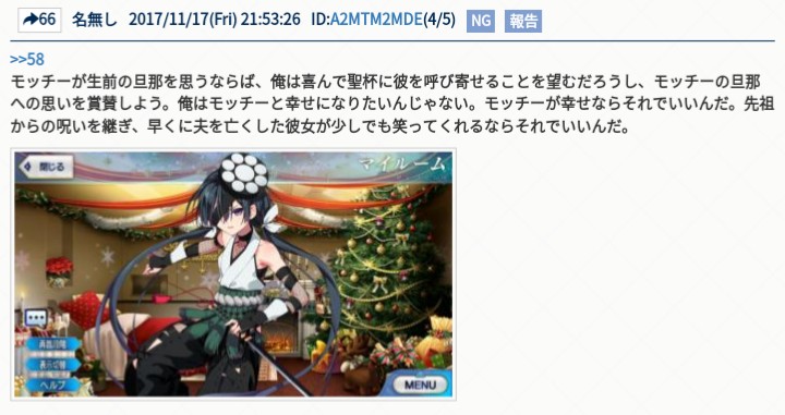 魅力的な女性も増えて来たし、汎用スキル強化も兼ねて。記録は医務室に供えておこう...。すまない、ちょっと流れ読まず熱くなりすぎたな……好きなサーヴァントの名前を挙げて落ち着こう……