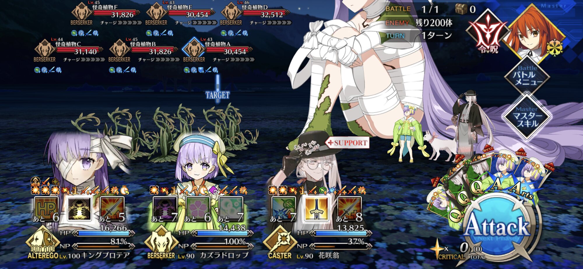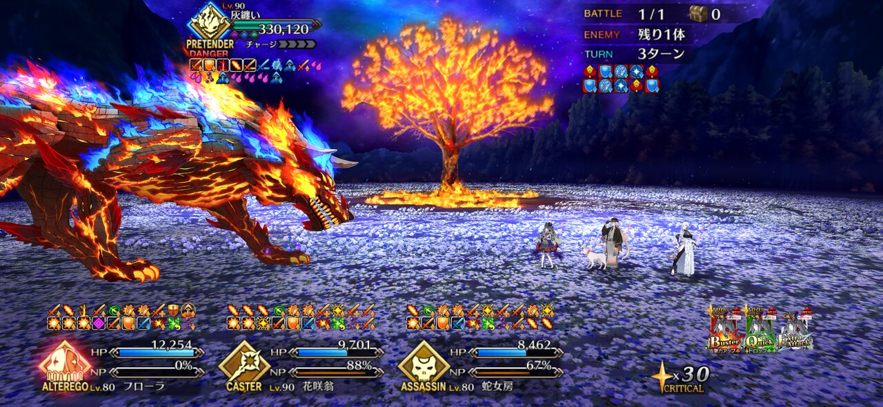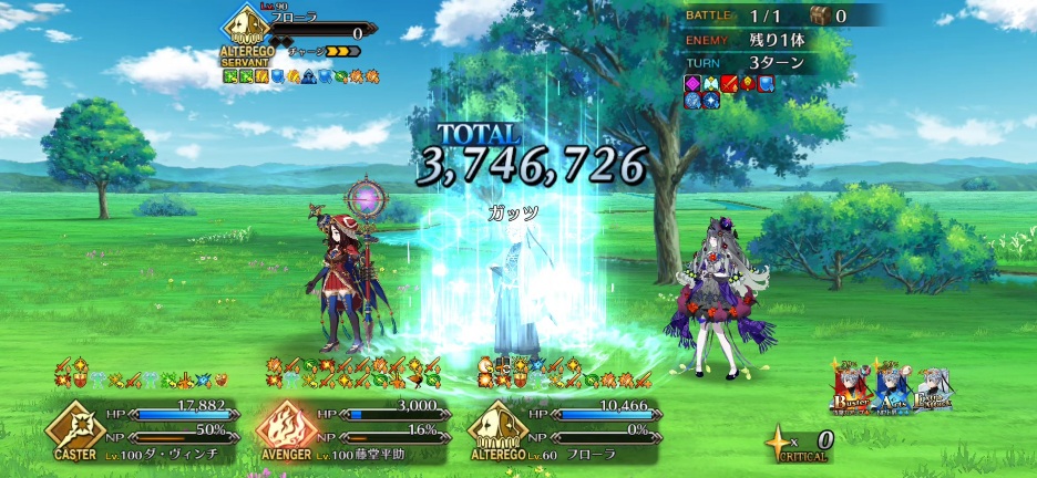 スターもNPも結構稼げるし花ちゃんにクラス有利で放っといても被ダメ抑えられるし、かなり楽ちんですよ耐久で怒らせようと思ったら、マーリンが2ターンで沈められて笑った。花の魔術師と呼ばれてるお前からかよって腹抱えた