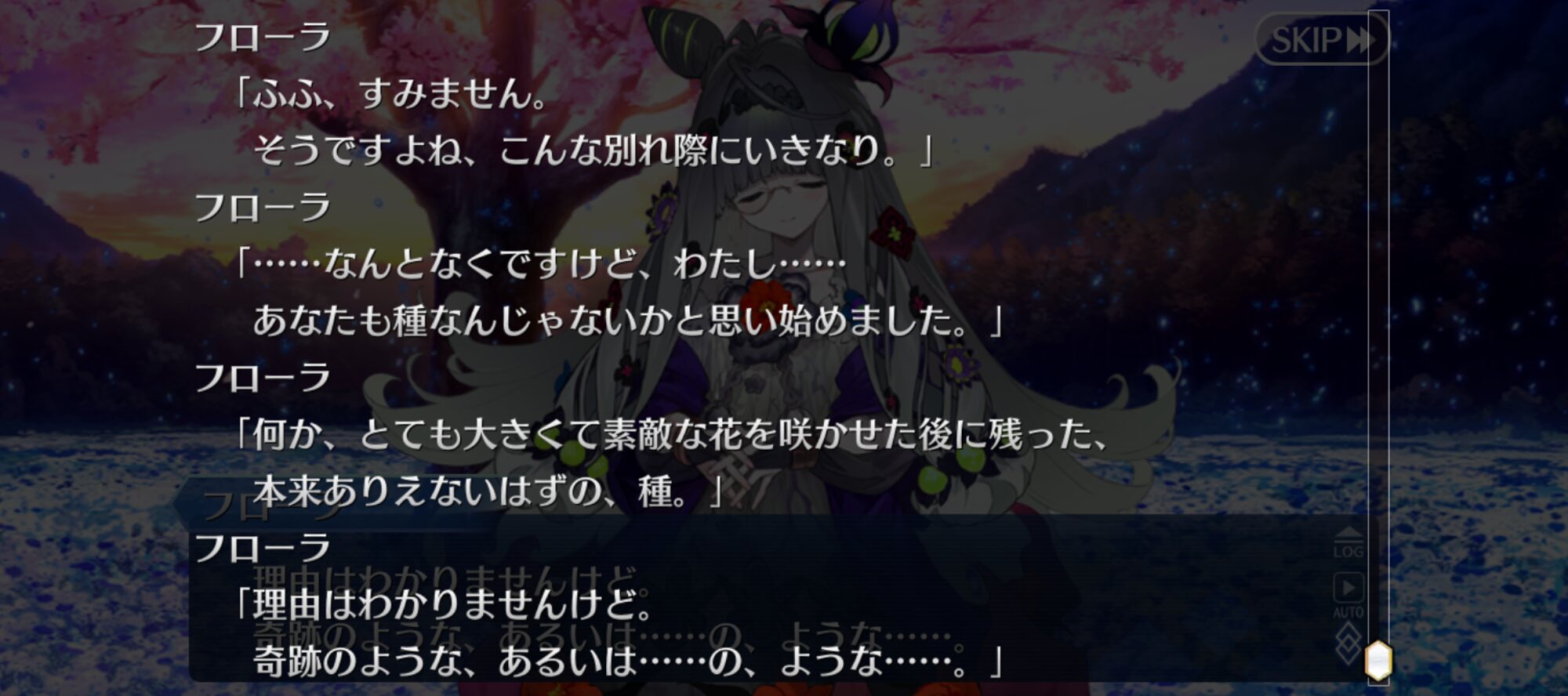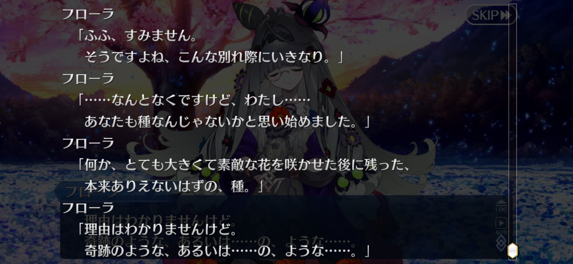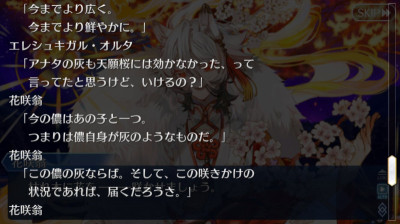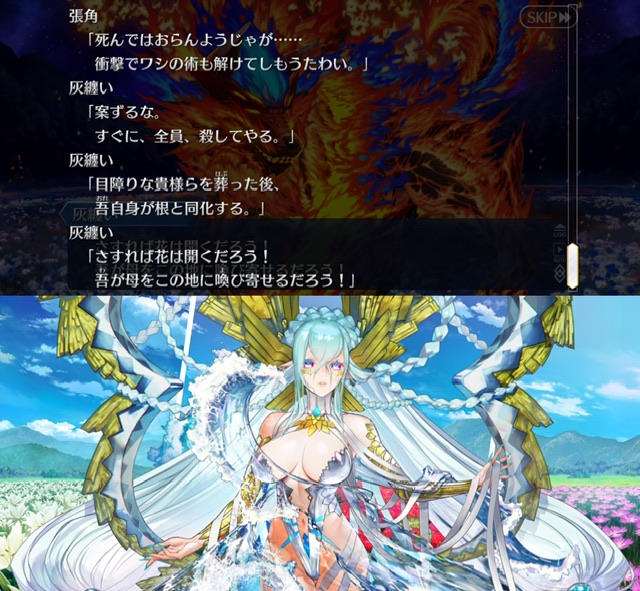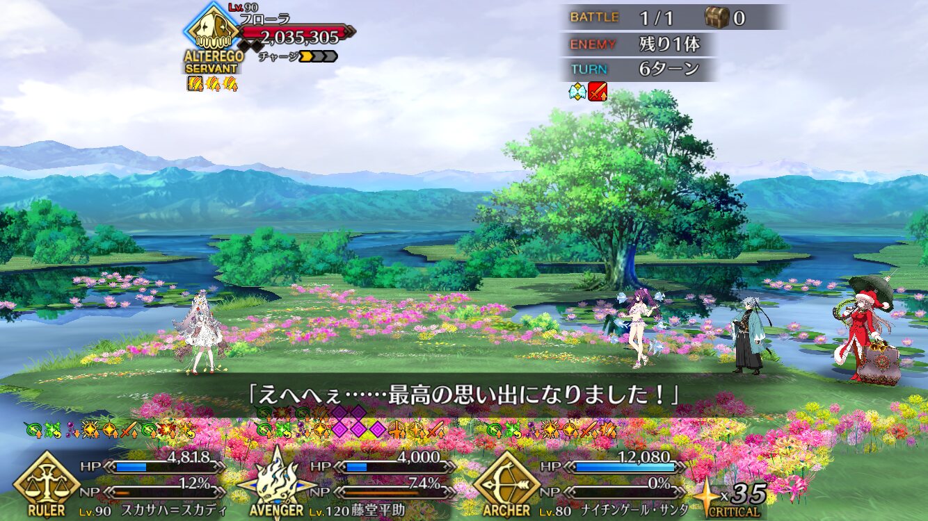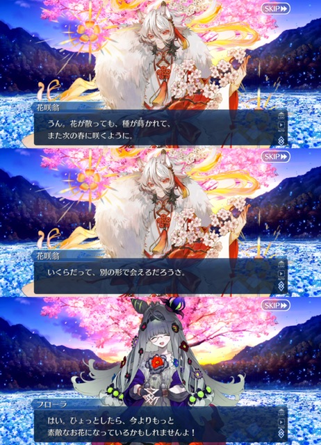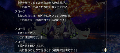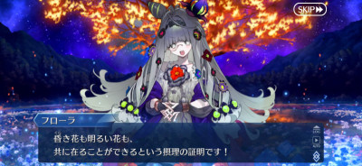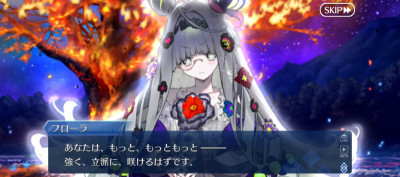 一回咲いた後また新たな花を咲かせるとぐだを評したり全部終わった後単純に元のエンディングに戻るわけじゃないのかなとちょっと明るい気持ちになったなとりあえずフローラ怒らせてから怒涛の令呪使用で満足するまで耐えきったけど、これって満足する前に倒しきると特殊セリフとかあったりするのかな