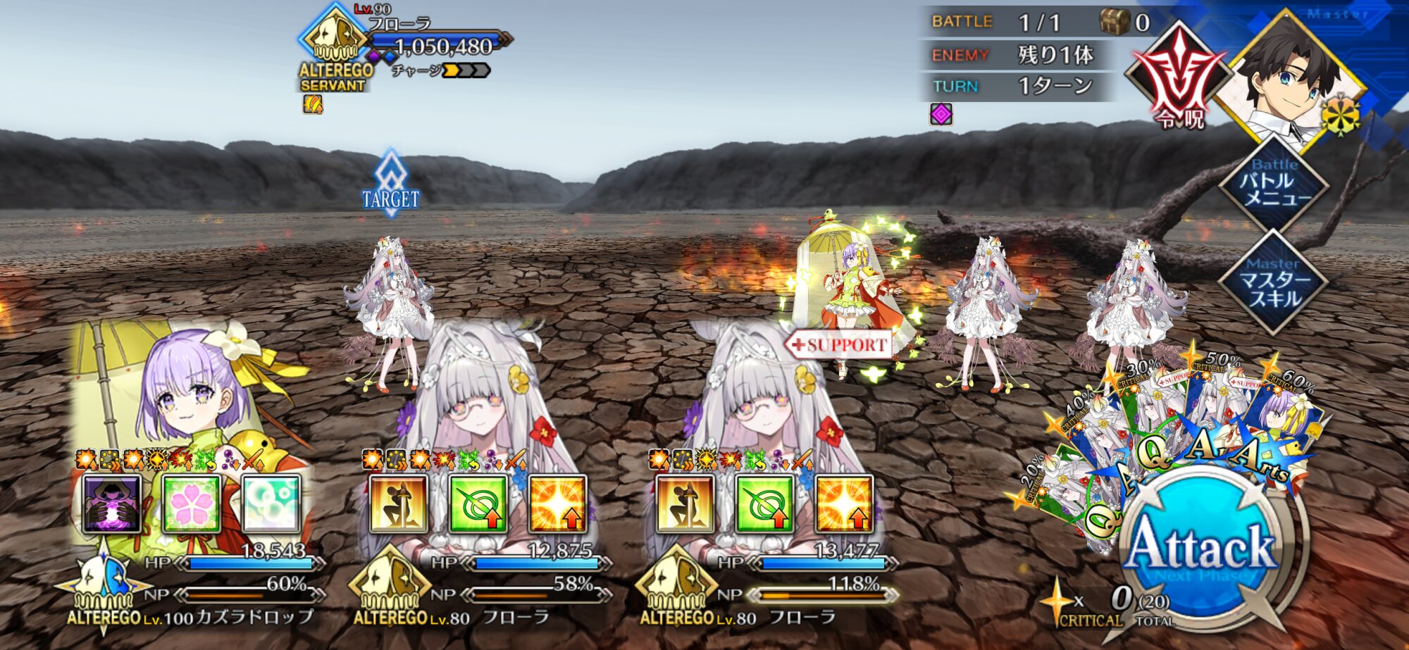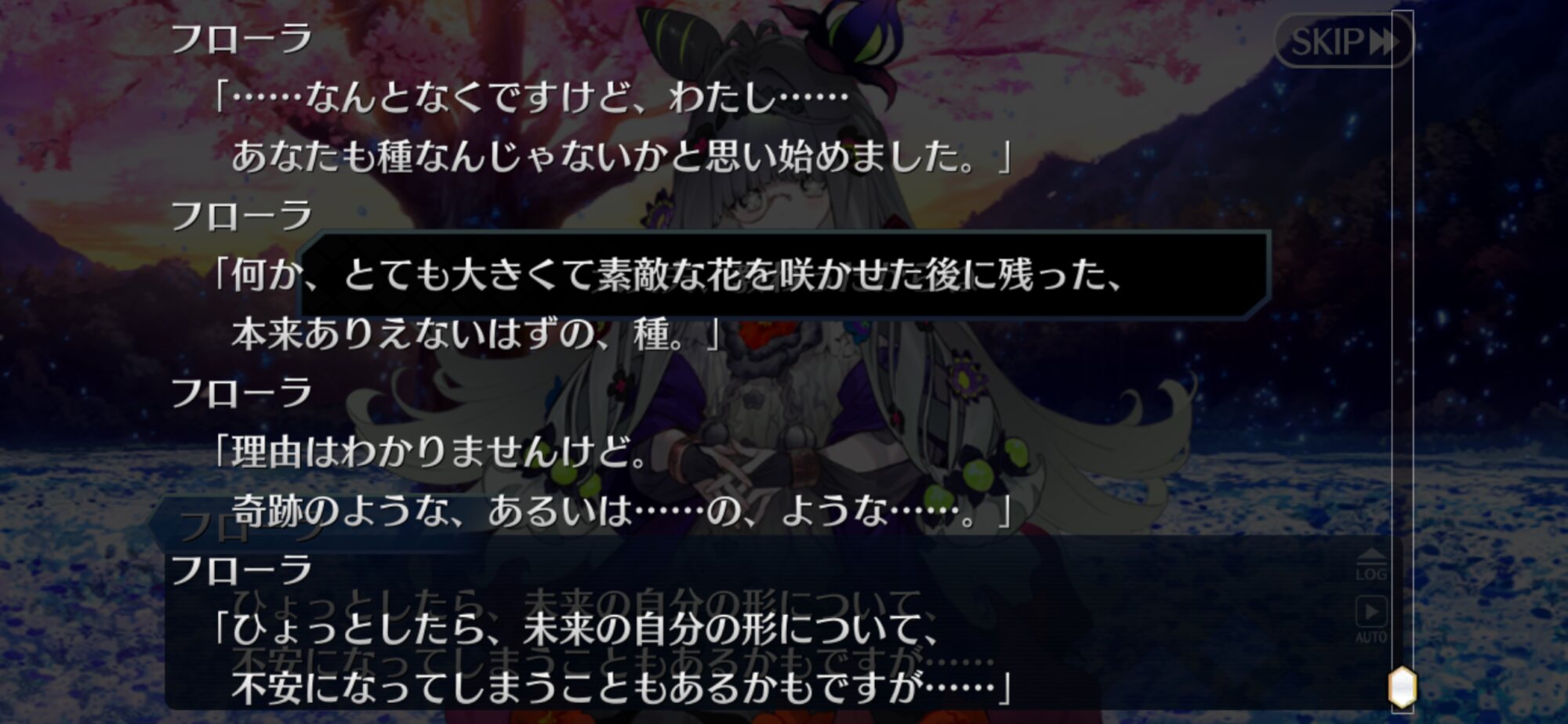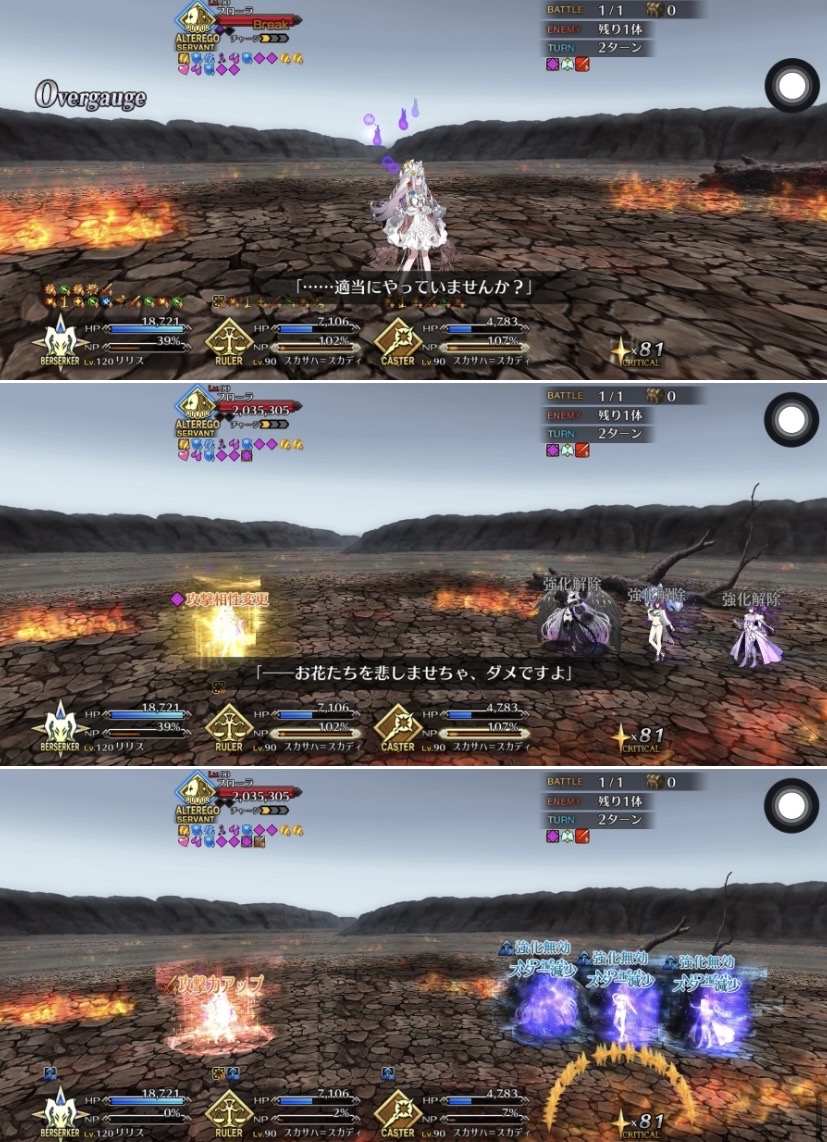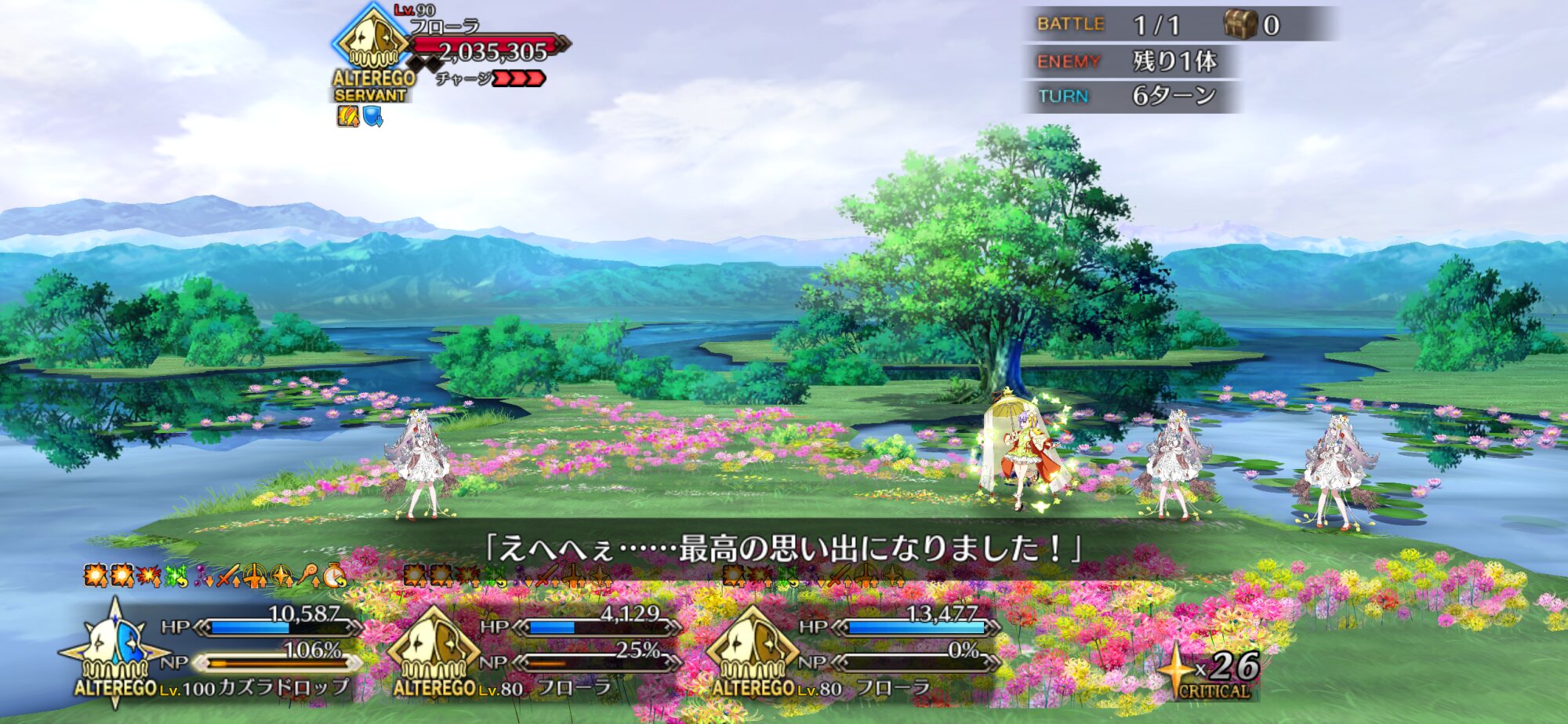 一回咲いた後また新たな花を咲かせるとぐだを評したり全部終わった後単純に元のエンディングに戻るわけじゃないのかなとちょっと明るい気持ちになったなとりあえずフローラ怒らせてから怒涛の令呪使用で満足するまで耐えきったけど、これって満足する前に倒しきると特殊セリフとかあったりするのかな