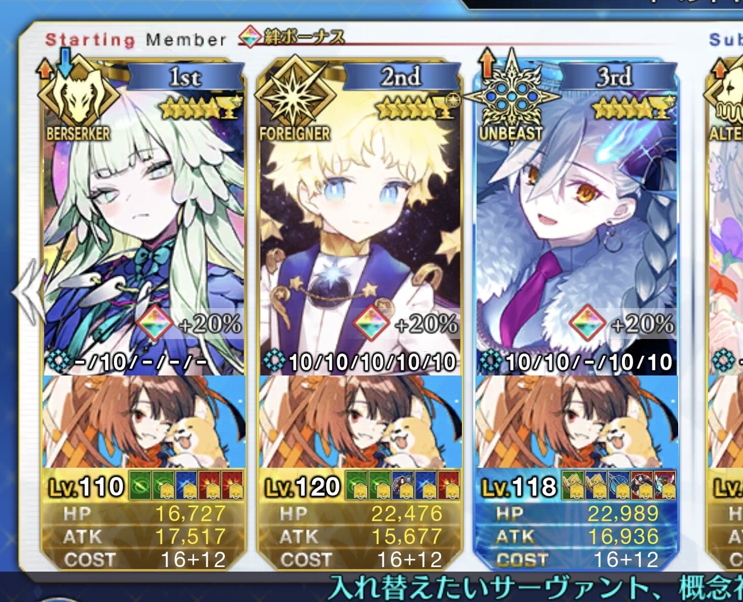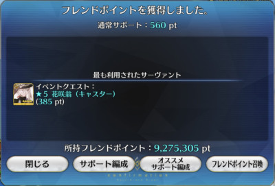 まあ、シナリオ中に出番が無いのは惜しいが、せっかく絆が上がりやすい期間だから絆10や15を目指したい。終章クリア前提だから言っていいよね?