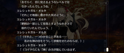 個人的にはエレシュキガルに助力したり「手伝う?」って聞くところから、エレシュキガルにまつわる神様のサポートもあったんじゃないかな。それで相性がいいみたいな発言もあったから……