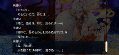灰纏いの翁 霊衣とかで欲しかったなあ今回のイベント、まじでキョウチクトウがなくてよかった気がするよ