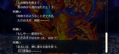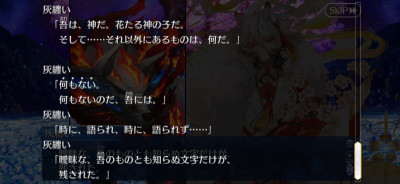 偽典ソロモンも言っていたが生存競争に善悪はないからね。今回日本神話由来のキャラが多く出てきたけど、本人じゃなくて分霊ですよ〜だったり正体はなんとなく推察できるけどぼかして確定させないようにしていた印象。まだ完結していないRequiemで扱う予定なのか、型月における日本神話周りの設定はFGO内ではこれ以上掘り下げないつもりなのかな?