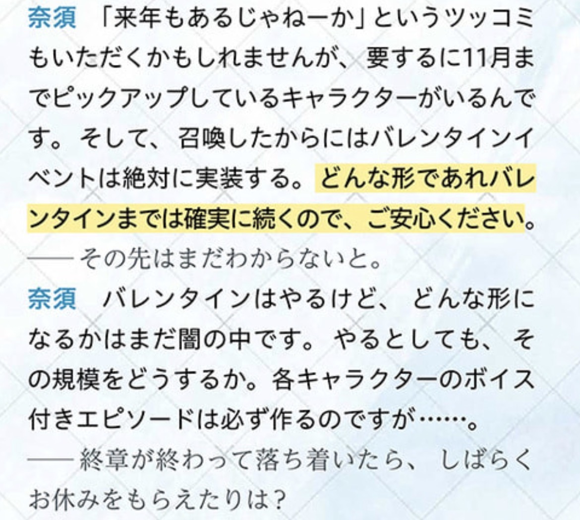 バレンタインと言えばカレンが実装されてバゼットが実装された