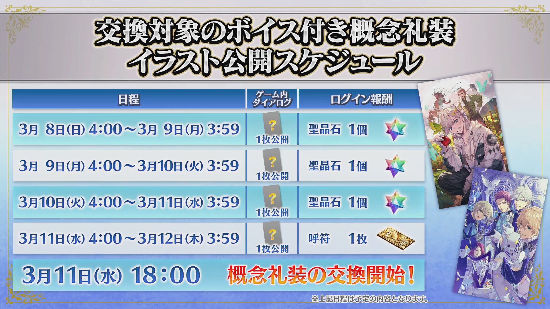 あそこ逃すとスケジュール的に次に挟めるのは周年前のイベントになりそうだから早いうちに来るなら4月っぽいよね>>758