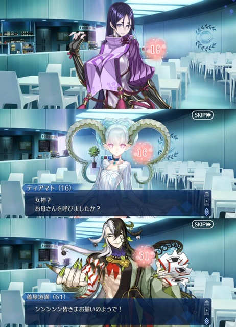 直前のイベントもそういう雰囲気あった気がするアフタータイムが全体的に見送る為の準備期間みたいな雰囲気は前回のイベントからあるよね。愛する者を愛するが故の別れを受け入れられるか。そこを考えたらティアマトママの数値が低いのは納得なんだよな