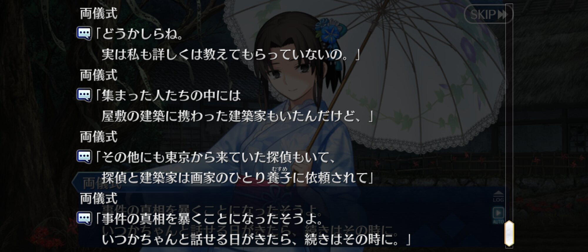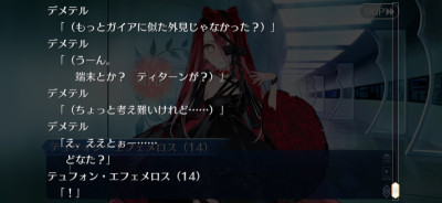 良家の娘が人間じゃない子供を産んだら絶対ろくなことにならないし、バレたくないから離れを作るというのはわからんでもない。あの時代も今も自分とは違うものが生まれたら嫌というのはあるあるそう言えば「エリニュスの胎動」の説明文にはガイアから受け継いだ機能が云々と記述があるけど、もしかしてエリニュス名義の時はガイア(女神の方)の意思が入り込む余地が生じたりするのかな。