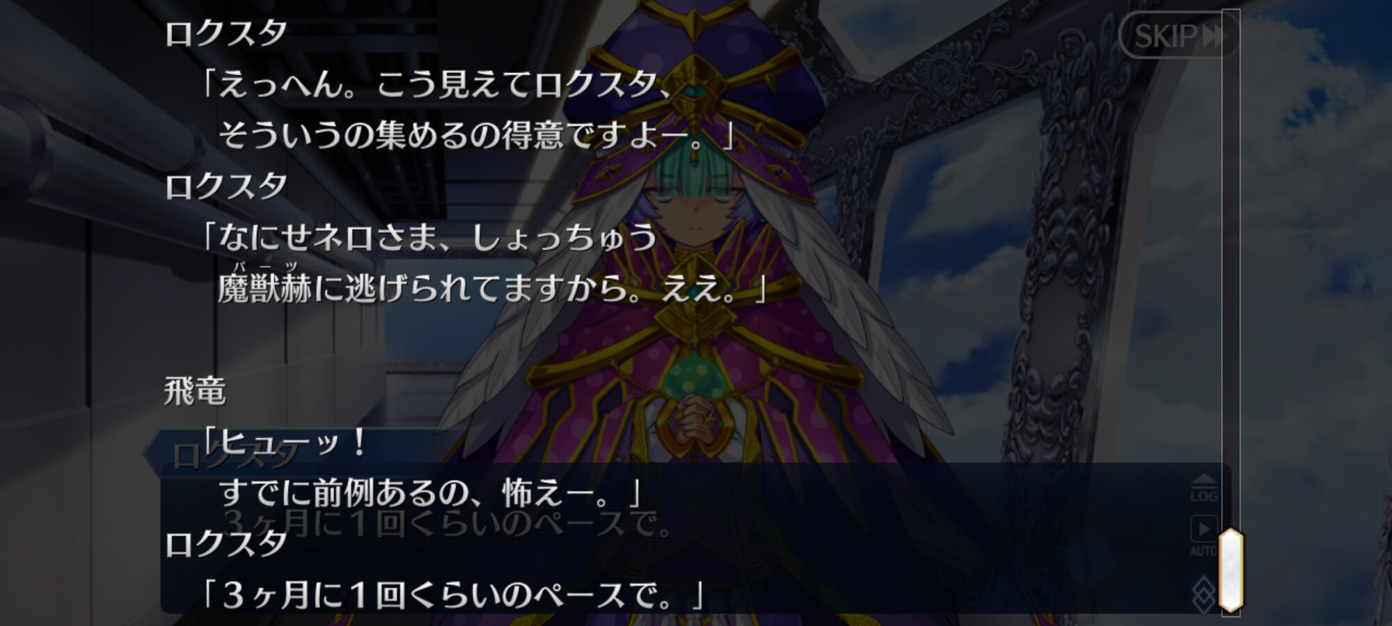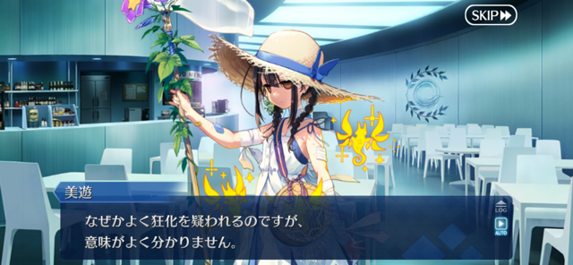 美しいものを見てきなさいと塔から放り出され、善き場所を遠巻きに見つつ、放浪する…と、思いきや居るってことは理由があるんでしょう。人界すでに彷徨いまくりでカルデアに来てたから、行く場所はもうないんかもしれぬ。やだ、居て下さい