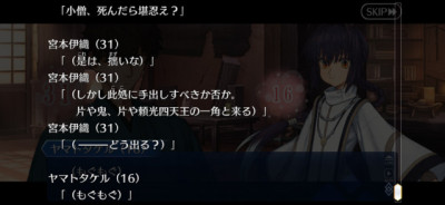 時代背景やら人生考えると「戦闘系以外はからっきし」なままのメンタルとかもあるしなあ。古い生まれの英霊程「割と子供っぽい」性格のままの人も多い。それくらい人生に余裕や戦闘以外の経験を積む機会が無かったとも考えられる。タケル君ちゃんとかサムレムみててそう思うよ。これで成長してからは為政者の道歩めたタイプとかだと違うんだろうが。>>64