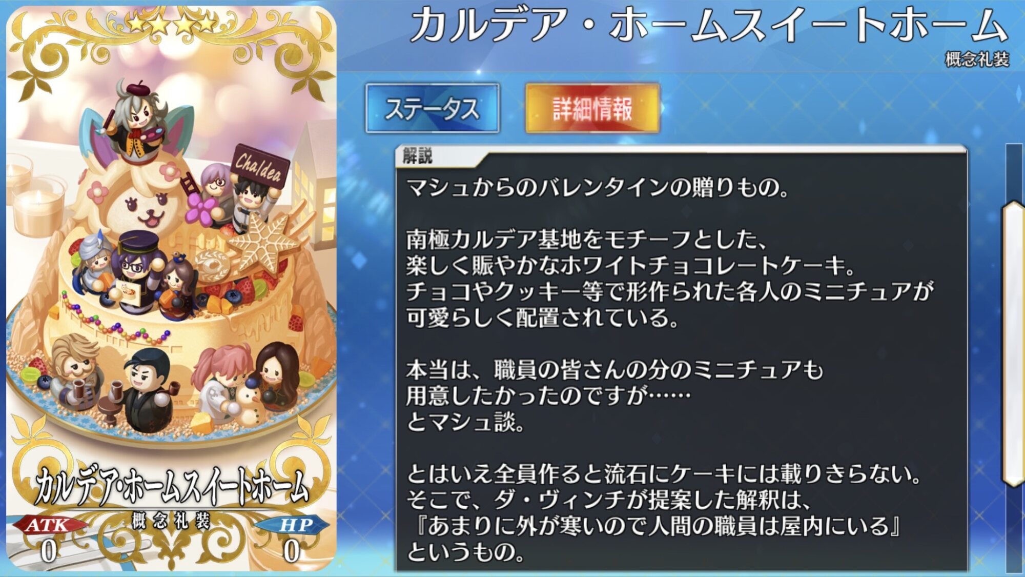 カルデア基地モチーフのチョコケーキの出来は当然としてみんなのミニチュアのクオリティもすんごいですもんね全体を見ると今後出る本編の重要な要素からなんとかコメディ部分を抽出した感が強い