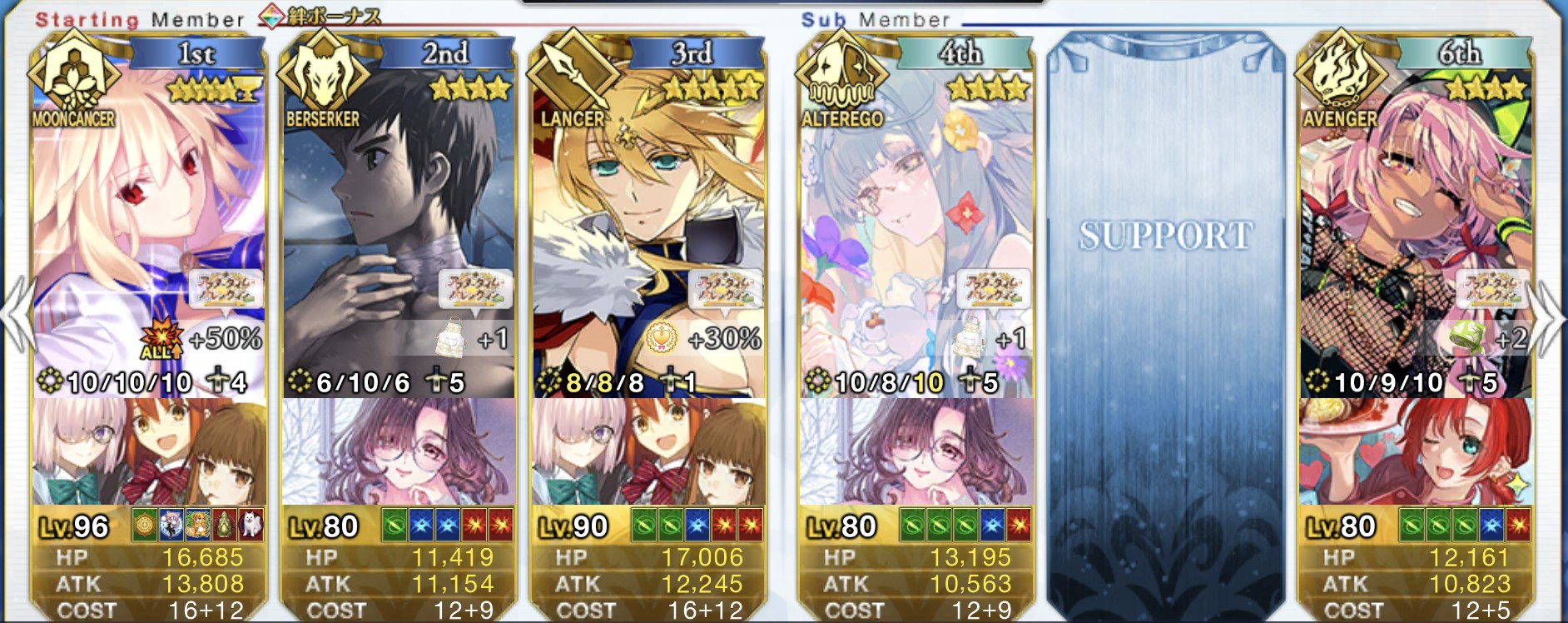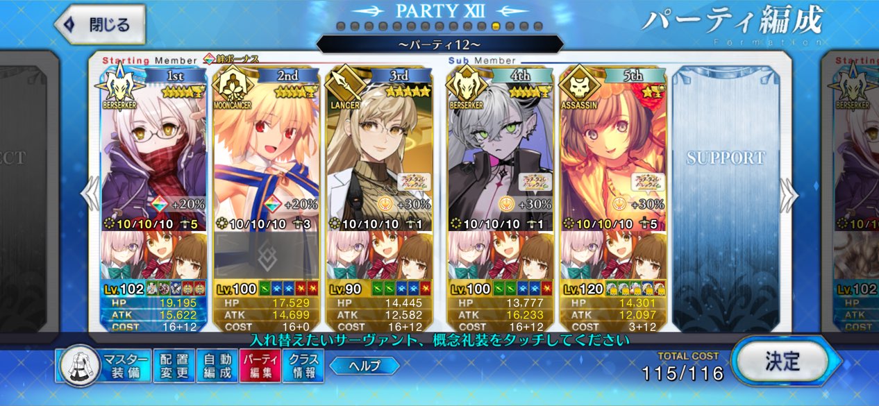フレはオベロン固定だけどこれで6積みで回れるのでありがたい彦斎ちゃんのバレストラストどーゆうことなの