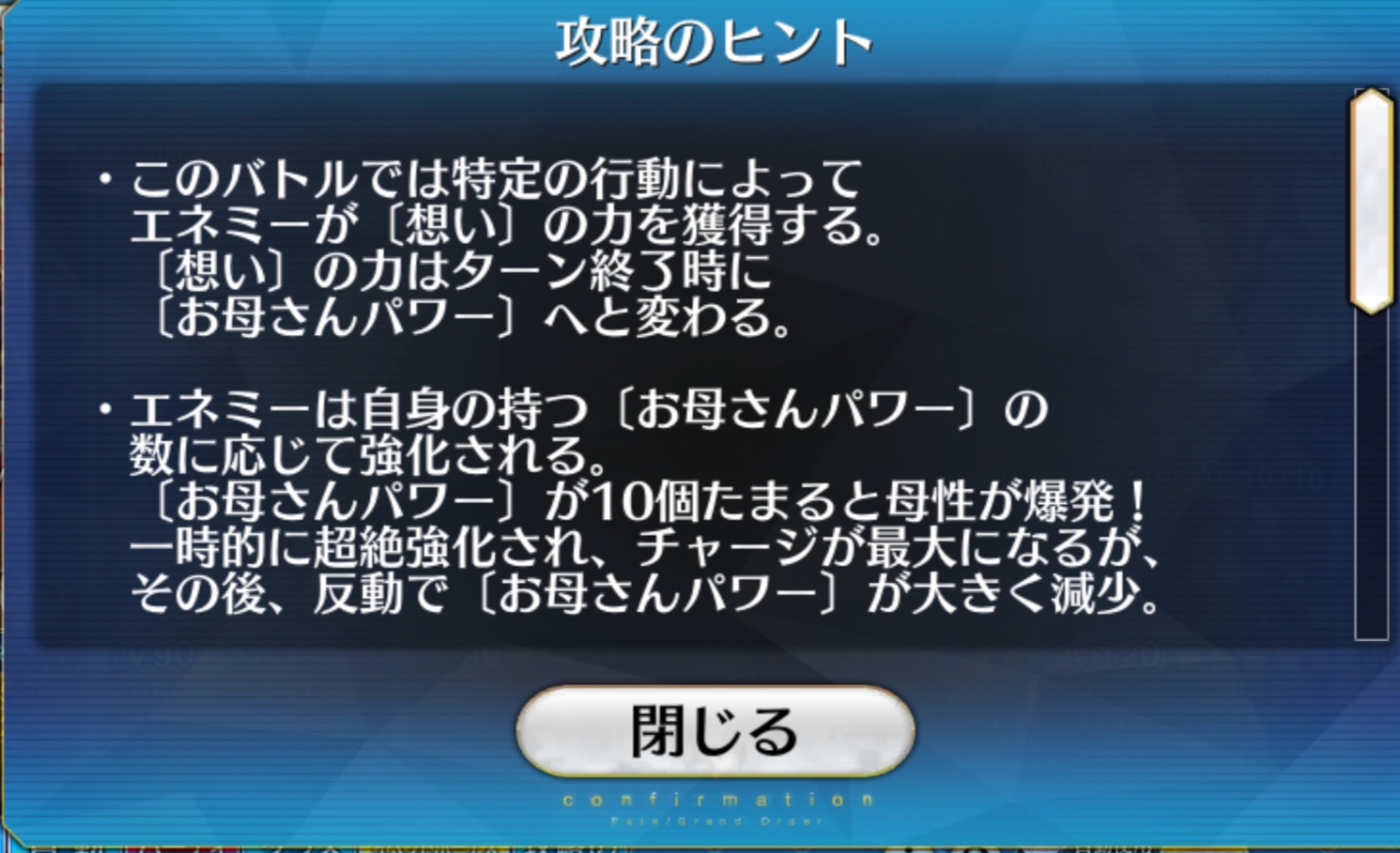 ・エネミーは自身の持つ〔お母さんパワー〕の数に応じて強化される。