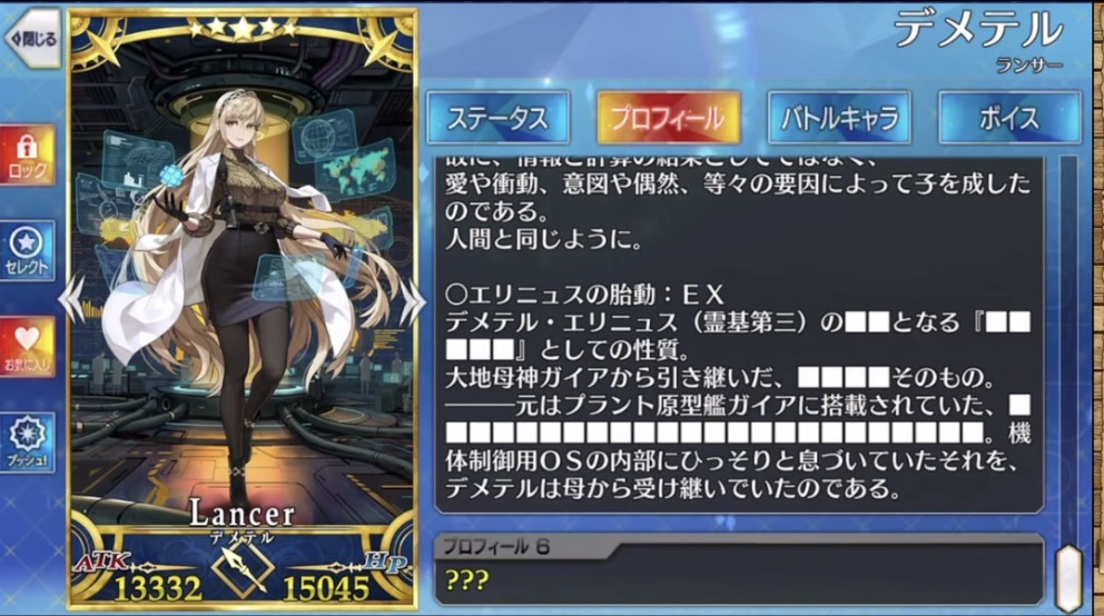デメテルさんが言ったようにデメテルさん主観によるお母さん度数なのは間違いない。ただ評価基準が大地で命を育む事に重きをおいていたからあの各数値なんだと思う。