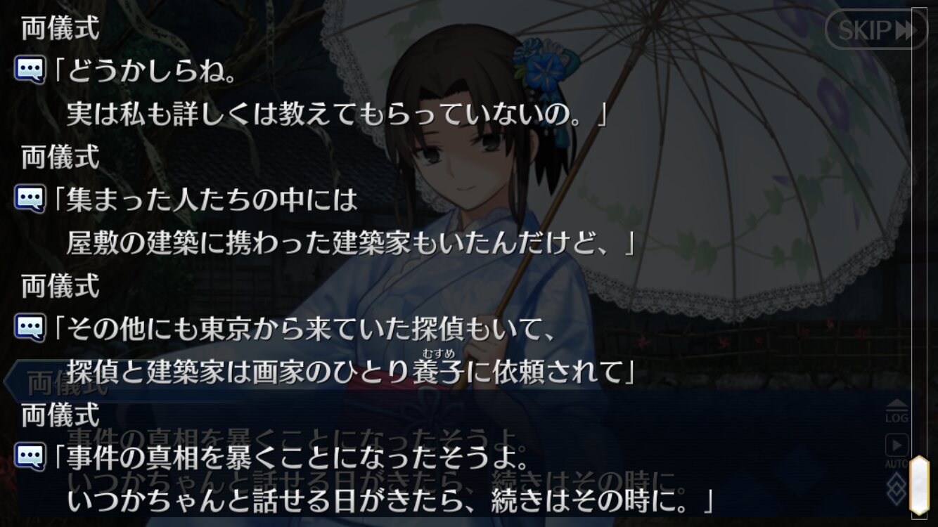 同じように藤丸の家庭環境についても気になる。あまりに長く触れた物語だからこそ、親密に感じられるようになってきた。あまりにも藤丸の成長が著しいからこそ、プレイヤーとの乖離が大きくなってきた。「誰でもありえる」みたいに設定された藤丸にも、「藤丸オリジン」なバックボーンへの言及が気になってきたのかもしれない。>>253