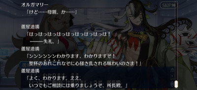 思えば、彼女は自分の父に都合よく使われた存在。彼女の母はそういう娘の姿をどう思ったのだろうか。そんな伴侶をどう感じたのだろうか。オルガマリーは母をどう思っていたのだろうか。マリスビリーとの関係性はどういう感じだったのだろうか。マリスビリーの計画にどのような影響を与えたのだろうか。野望のために時期をぴったり計画した子作りとか簡単にできるもんなん?