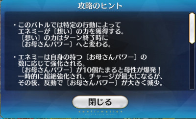 オカンの雷が落ちたか…・このバトルでは特定の行動によってエネミーが〔想い〕の力を獲得する。