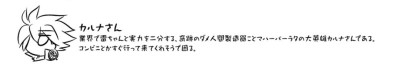 他所のネタ、コラ画像等の持ち込みは控えましょう。二次創作物の無断転載禁止、公式関係者のイラストや転載が許可されているものに関しては必ずリンク先を併記してください。