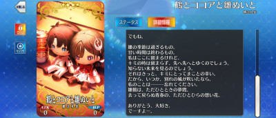 その後カルデア側で召喚できたんじゃないんかいお返しイベント回収中に思ったけど、