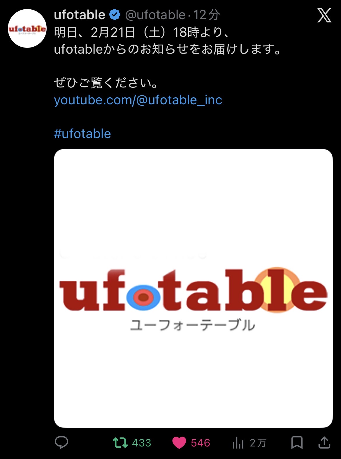 明日18時にufotableから、お知らせだとさ