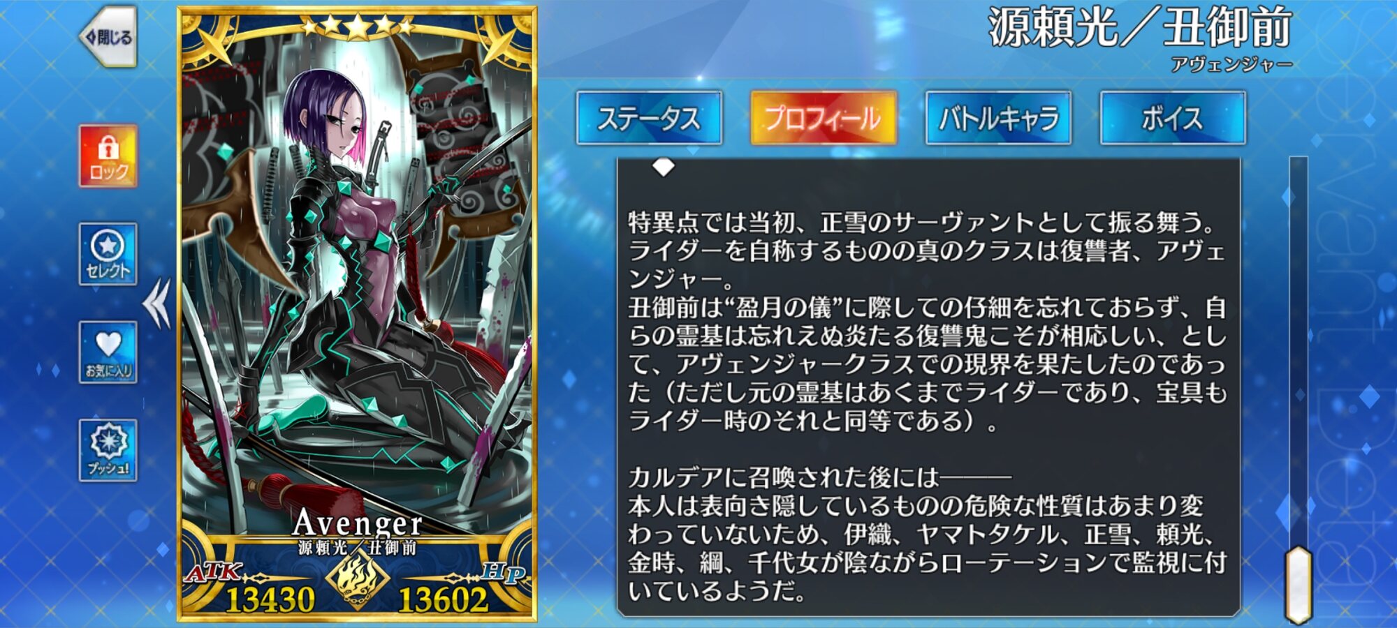カルデアの頼光さんはバーサーカーとして丑御前の側面がさらに強調されてるから余計にいけない