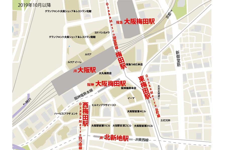 梅田はほら、環状線がボイジャーよろしくスイングバイするのと